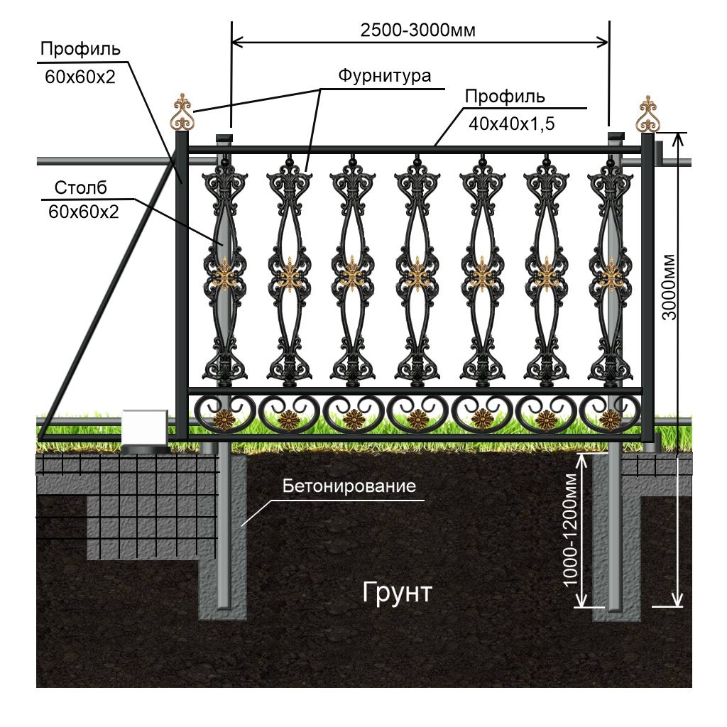 Конструкция и способы установки кованых заборов: